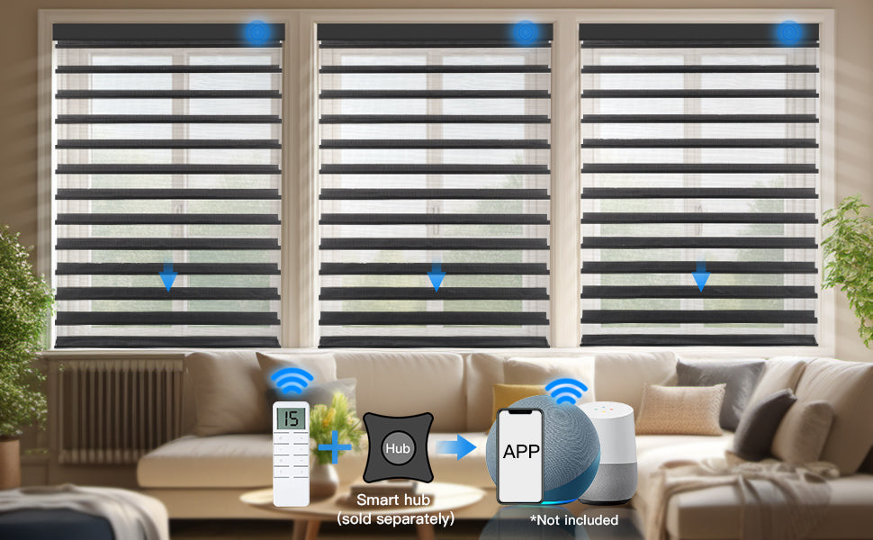 Bring elegance and innovation into your home with our Motorized Shangri-La Sheer Shades. Featuring soft fabric vanes suspended between delicate sheer panels, these shades beautifully diffuse natural light while offering adjustable privacy at the touch of a button. With a sleek cordless design and motorized control, you can effortlessly transform any room’s ambiance—bright and airy during the day, cozy and private at night. Available in a range of fabrics and colors, our Shangri-La sheer shades combine timeless sophistication, modern convenience, and energy efficiency, making them the perfect choice for a stylish, smart home upgrade.