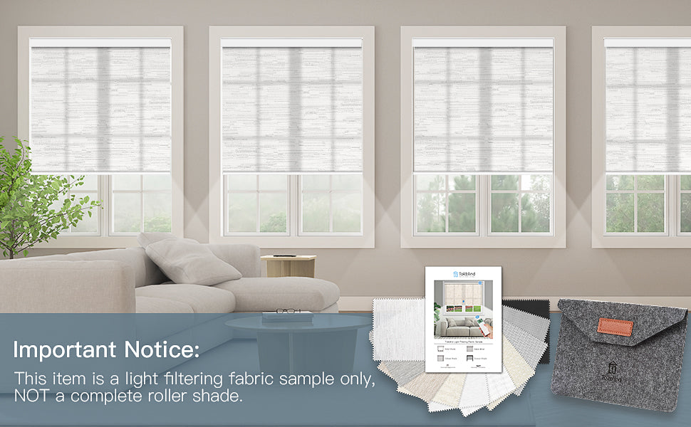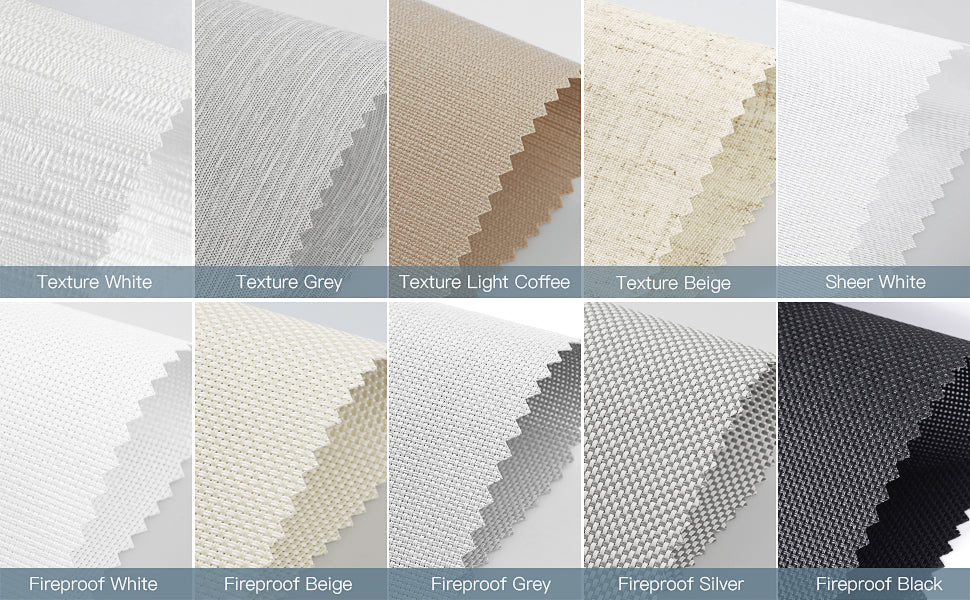 - Fabric Sample: The fabric swatch includes 10 options of light-filtering roller shade fabrics. If you're uncertain about which color to choose, we recommend purchasing a fabric sample first.