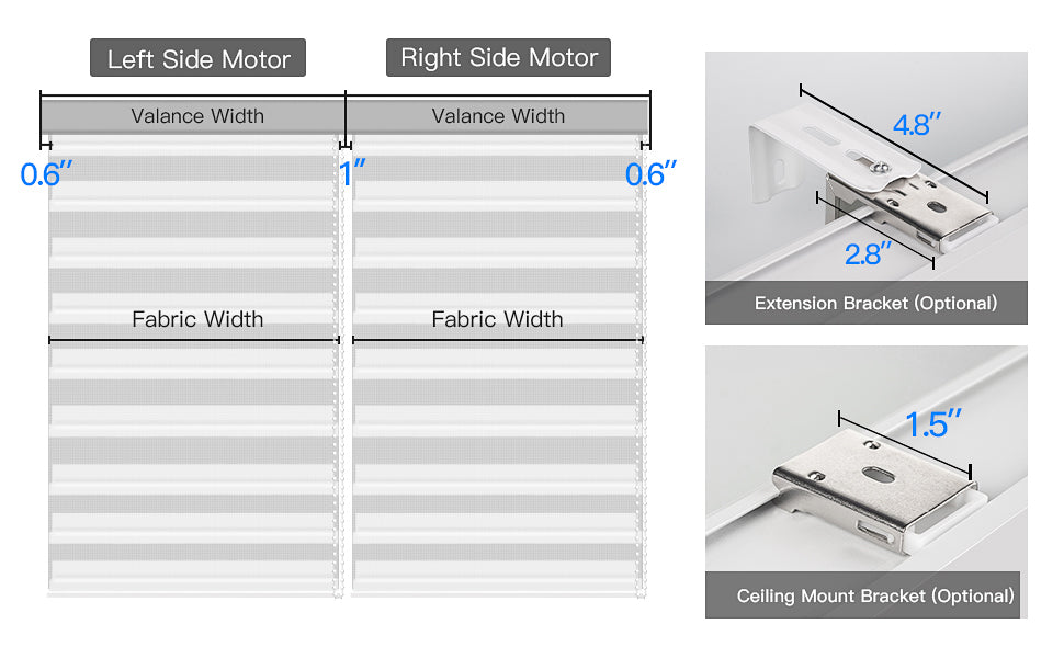 Fabric Gap: Fabric is 1" narrower than the shade.