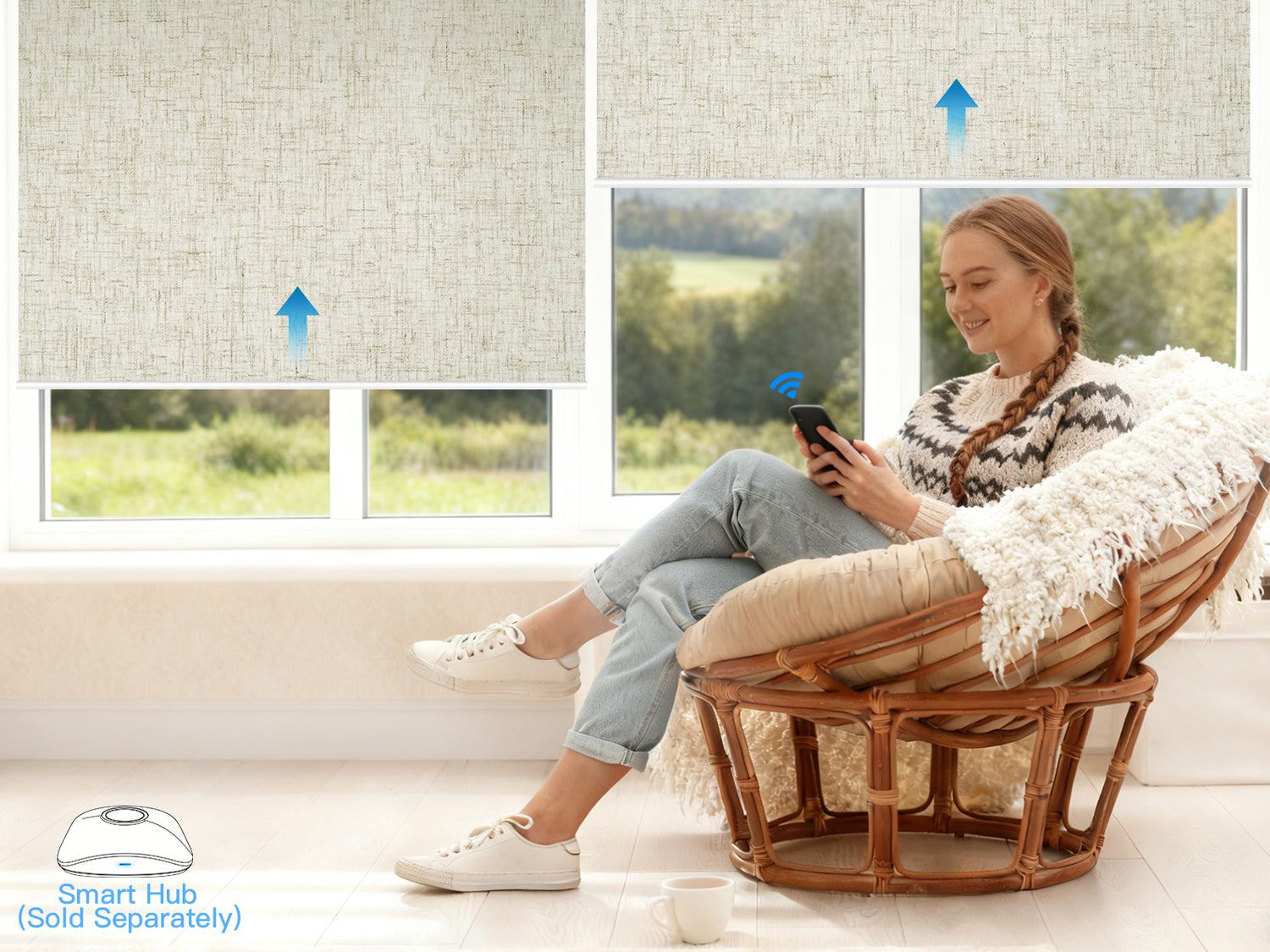 By connecting the shades through a HUB, you can control them remotely via your phone.
