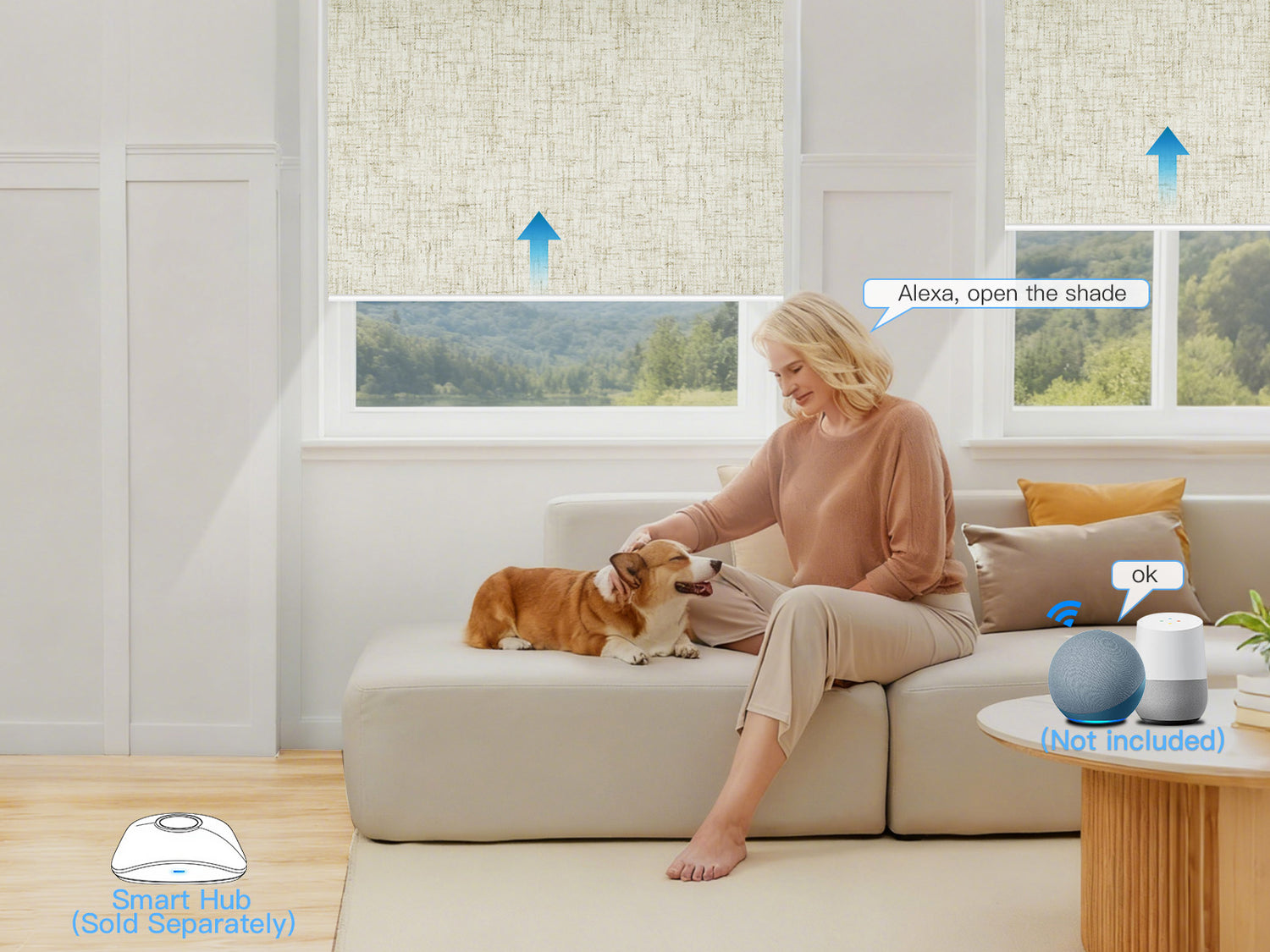 By connecting the shades to Alexa via a HUB, you can control the shades using voice commands.