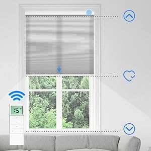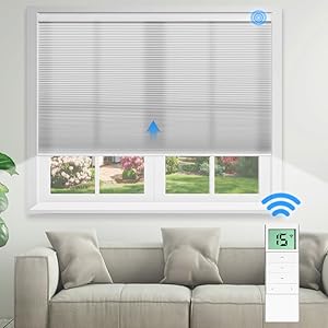 Made with 50%-80% blackout fabric, these motorized cellular shades filter natural light while maintaining privacy. The unique honeycomb-shaped fabric cells expand and contract as the shade is raised or lowered, providing energy efficiency, noise reduction, and UV protection. The cordless design ensures a safe environment for children and pets. Perfect for living rooms, bedrooms, kids' rooms, home offices, media rooms, and offices. For indoor use only.