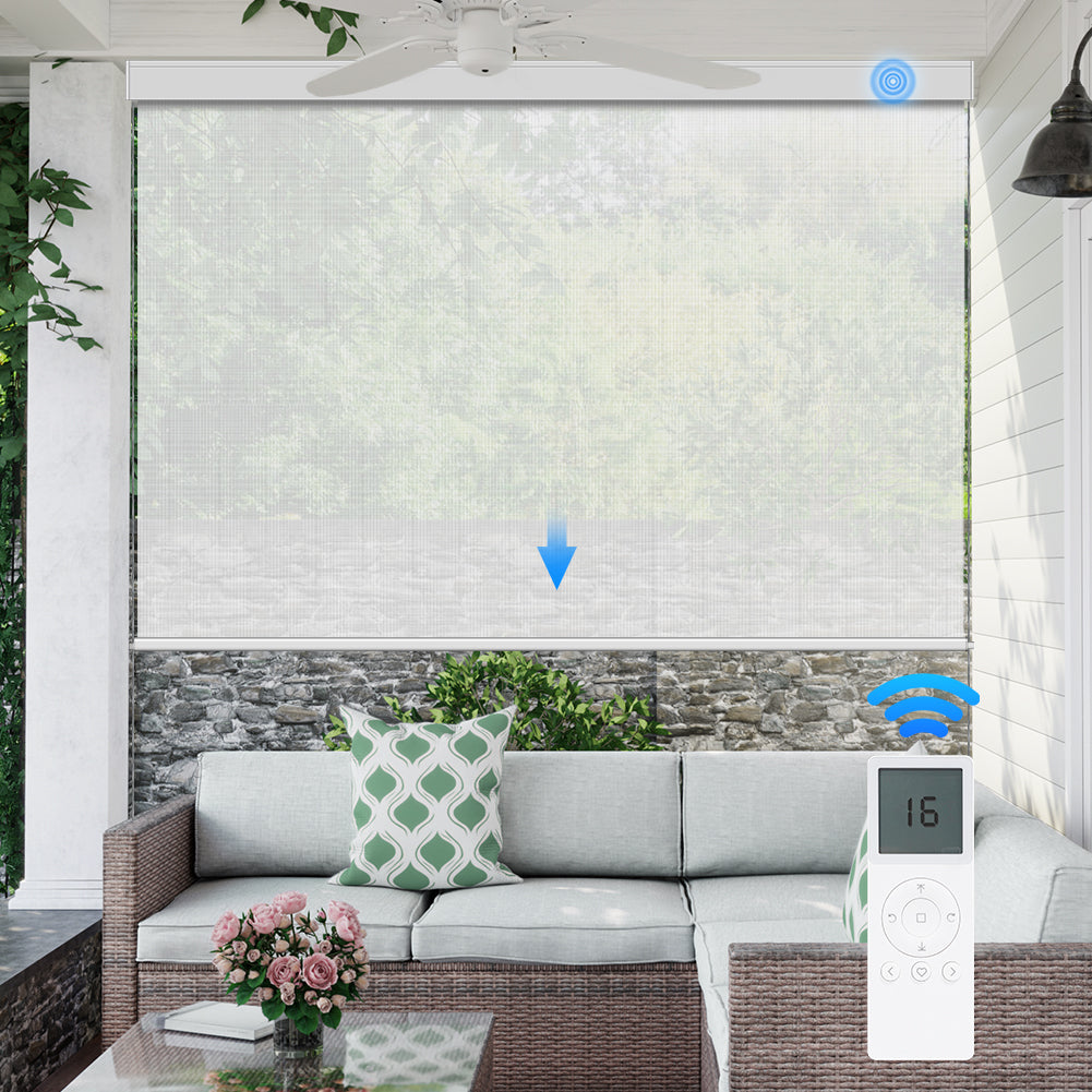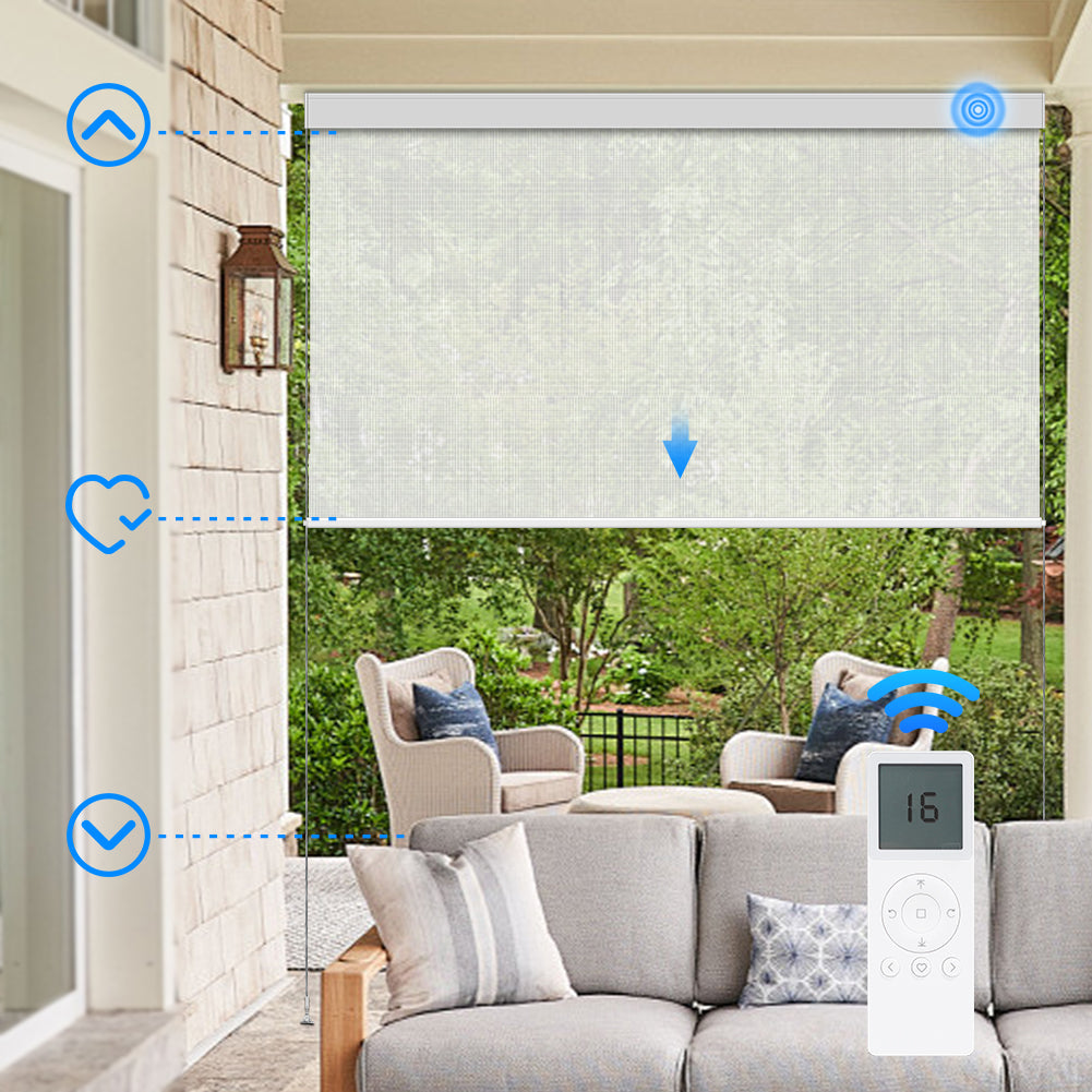Wind-Resistant Design: The motorized shade is equipped with a stainless steel wire guide system that helps prevent swaying or blowing in the wind—perfect for outdoor environments.