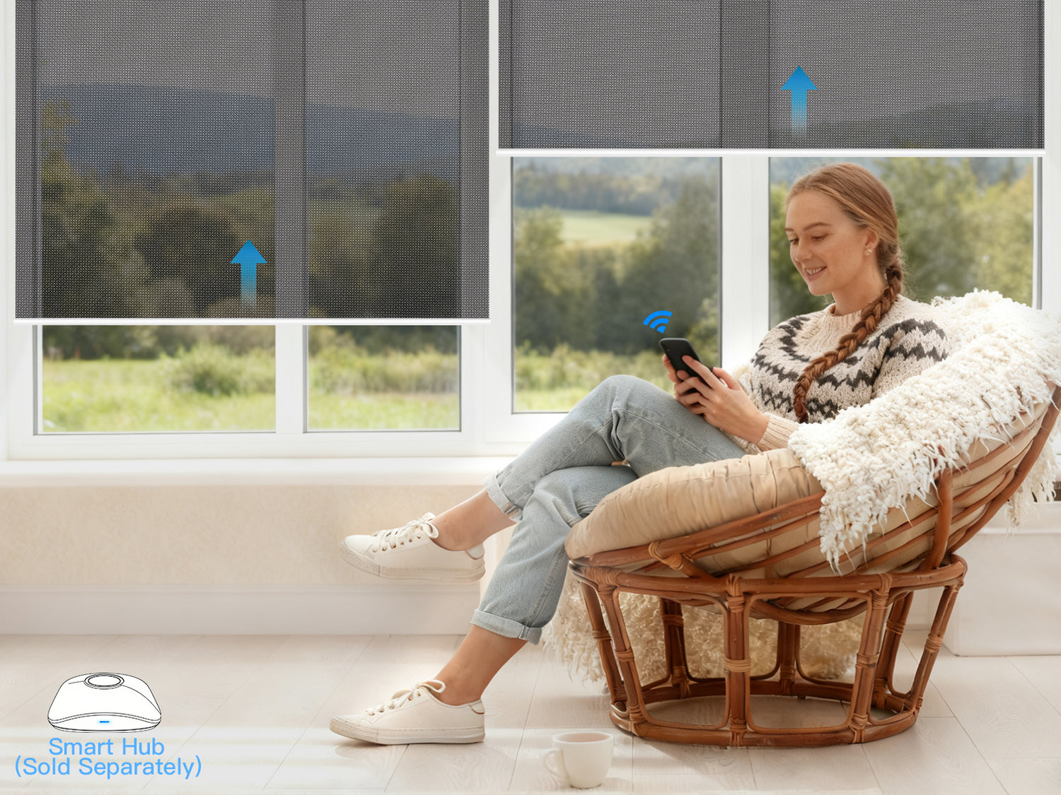 By connecting the shades through a HUB, you can control them remotely via your phone.