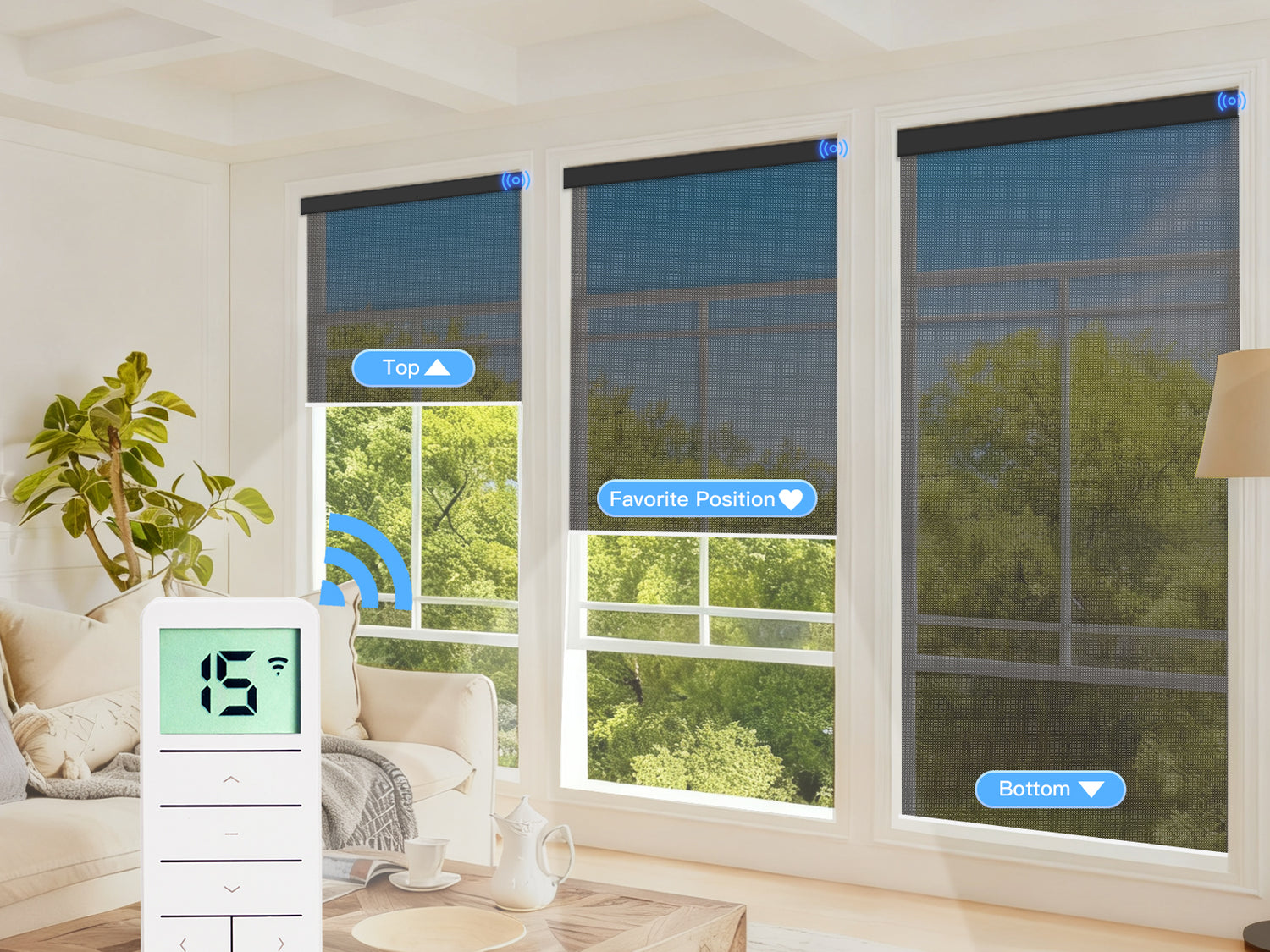 - 15-Channel Remote: Controls up to 15 blinds individually or together
