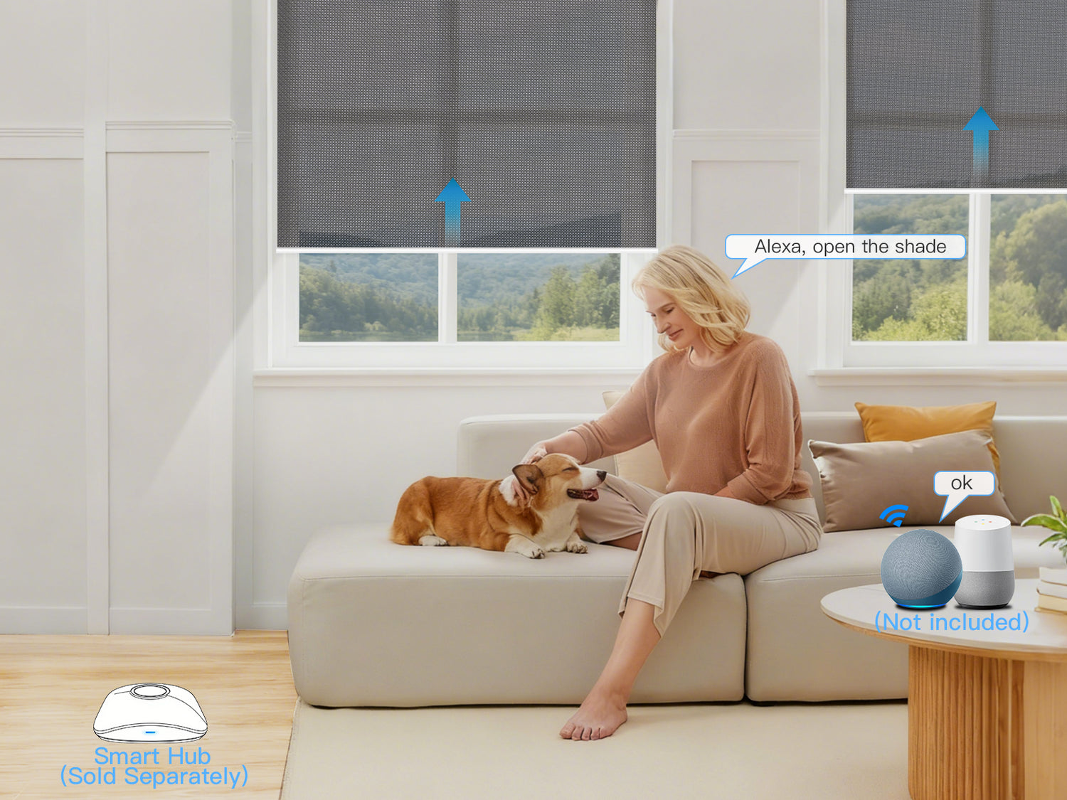 By connecting the shades to Alexa via a HUB, you can control the shades using voice commands.