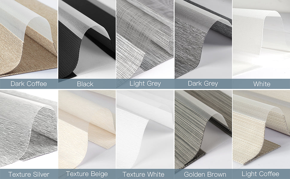 - Fabric Material: The dual-layer sheer and banded polyester fabric combines functionality and style. The light-filtering sheer fabric gently lets in soft sunlight while allowing you to enjoy the outside view. The banded polyester fabric ensures privacy and blocks most incoming light. Adjust the fabric position to easily control the amount of light entering your space.